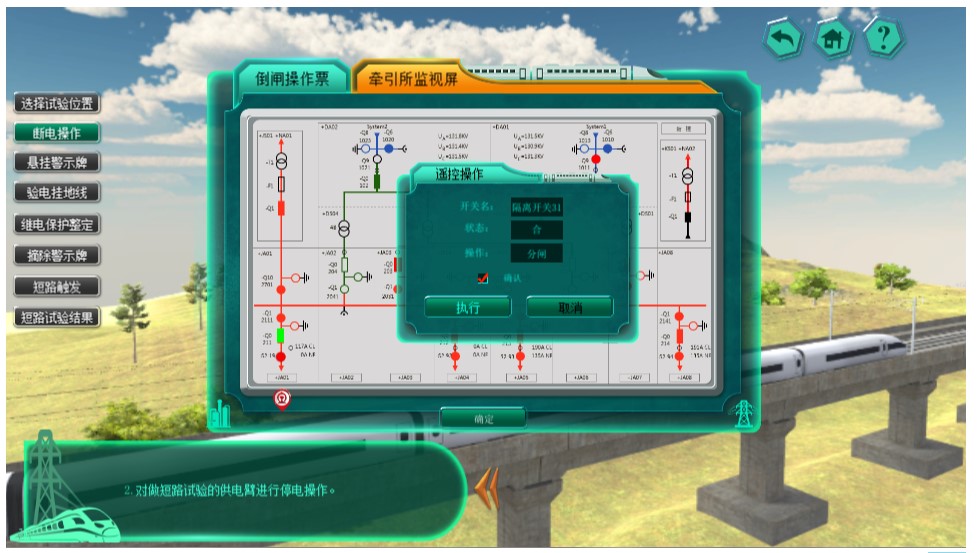 高速铁路牵引供电系统设计与运行虚拟仿真实验是针对高速铁路牵引供电系统设计周期长,环境复杂,造价高,学生很难到铁路现场跟踪全过程而设计的。它突破了高速铁路牵引供电设计无法在实验室内进行工程实际验证的瓶颈,将传统教学的“纸上谈兵”拓展到实际场景下的“沙场练兵”。