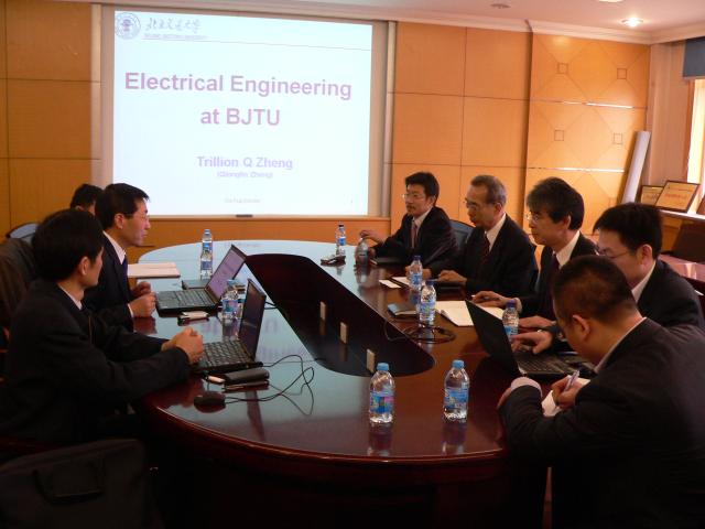 电气学院院长郑琼林教授和学院部分老师接待了来宾。郑琼林院长向来宾介绍了学院的基本概况及学院在电力电子与电力传动领域的研究成果和进展。藤平龙彦先生介绍了富士电机电力电子器件研发进展。双方就电力电子器件使用的技术问题展开了讨论。高井明先生表示,该公司已将2010年销售重点放在中国,特别是轨道交通方面,希望能与我院开展紧密合作。合作方式为支持我院开展前沿技术研究、委派工程师来我院开设技术讲座、现场解决使用器件遇到的问题、免费提供研究试验用器件等等。