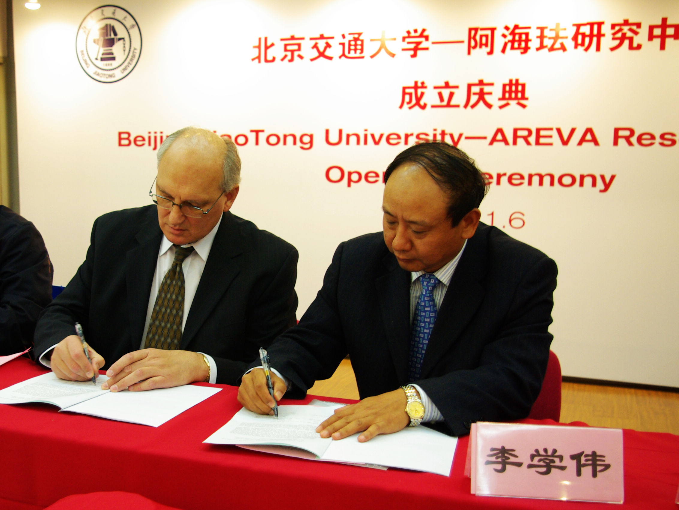 11月6日上午“北京交通大学-阿海珐研究中心”“北京交通大学-阿海珐研究生培养基地” 成立及揭牌仪式在红果园多功能厅隆重举行。我校李学伟副校长,AREVA T&D自动化全球研发总监Andrew Klimek先生出席了庆典,仪式由北京交通大学国际合作交流处处长徐宇工教授主持。